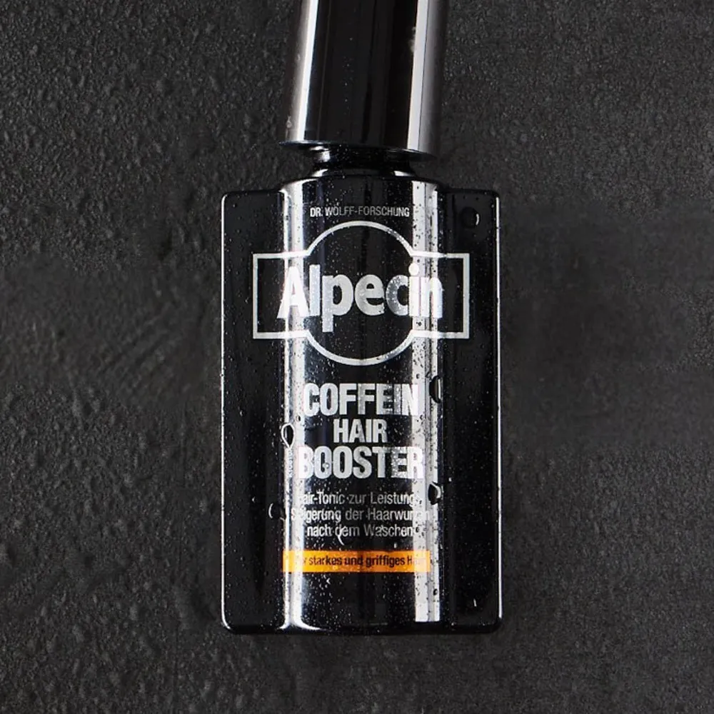Alpecin Coffein Hair Booster è un tónico capillare altamente efficace per migliorare le prestazioni delle radici dei capelli con il noto Alpecin Coffein-Komplex. Le radici dei capelli rinforzate favoriscono una crescita migliorata dei capelli. Ideale per tutti gli uomini che desiderano intervenire contro capelli indeboliti e perdita di capelli precoce - per capelli più forti e più corposi. Effetto del Alpecin Coffein Hair Booster La formula potente agisce con Coffein, Zinco e Niacina. Il Coffein attiva le radici dei capelli, prolunga le fasi di crescita e migliora lo sviluppo dei capelli. Rafforza la produzione di capelli direttamente alla radice e garantisce fino al 27% di cellule attive in più. Zinco e Niacina sono fattori essenziali per la crescita di radici sane. La radice dei capelli viene stimolata e si favorisce una crescita sana. Il Booster accumula un deposito di caffeina sulla radice dei capelli, che agisce per 24 ore. Per questo motivo si consiglia di usare il tonico quotidianamente per mantenere stabile il deposito. Subito dopo l'applicazione, il cuoio capelluto si sente rinfrescato. Il Hair Booster ha un profumo maschile elegante ed è presentato in un design moderno. Applicazione del Alpecin Coffein Hair Booster Applicare una volta al giorno Distribuire con la punta dosatrice lungo la linea dei capelli su tutto il cuoio capelluto Lasciare asciugare brevemente Spazzolare Stilizzare come di consueto Vantaggi del Alpecin Hair Booster Può essere utilizzato insieme ai prodotti per lo styling Si consiglia di usare con lo shampoo Alpecin, ma può essere combinato anche con altri Applicazione semplice Solo una volta al giorno Può essere applicato sui capelli tamponati o asciutti Sensazione di freschezza immediata
