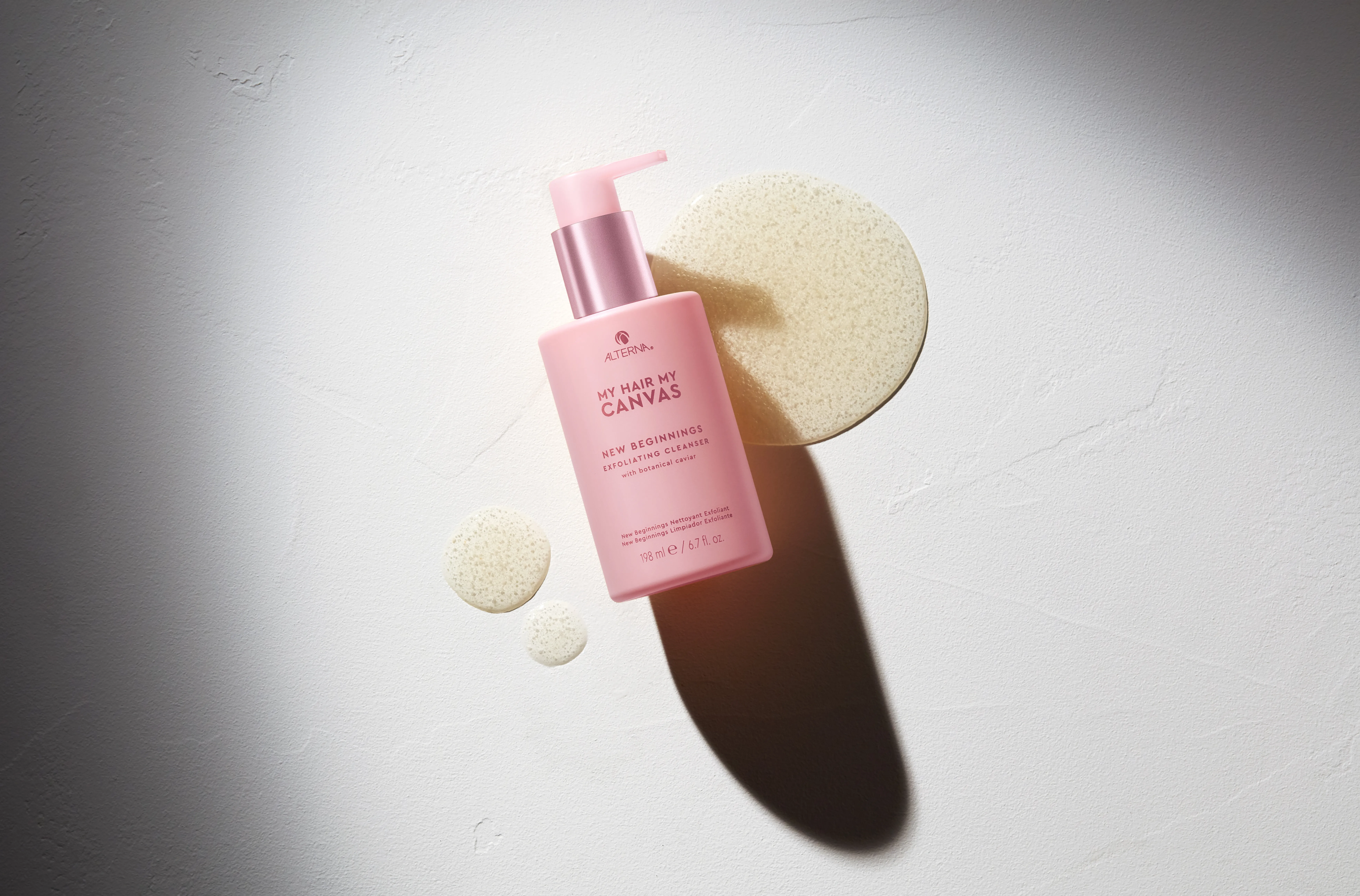 Un prodotto centrale della linea è Alterna New Beginnings Exfoliating Cleanser, uno shampoo delicato che rimuove i residui dai capelli. La collezione comprende anche altri shampoo, balsami, maschere per capelli e prodotti styling vegani di Alterna.