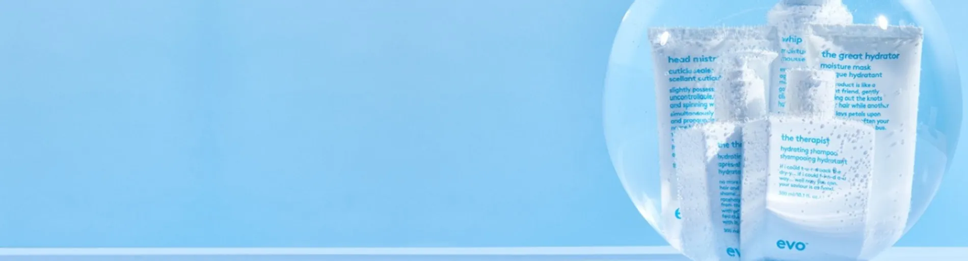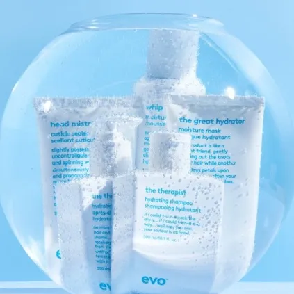 I prodotti di evo hydrate sono ideali per restituire ai capelli l'umidità persa a causa di styling con calore, colorazioni, esposizione al sole e carenze nutrizionali.