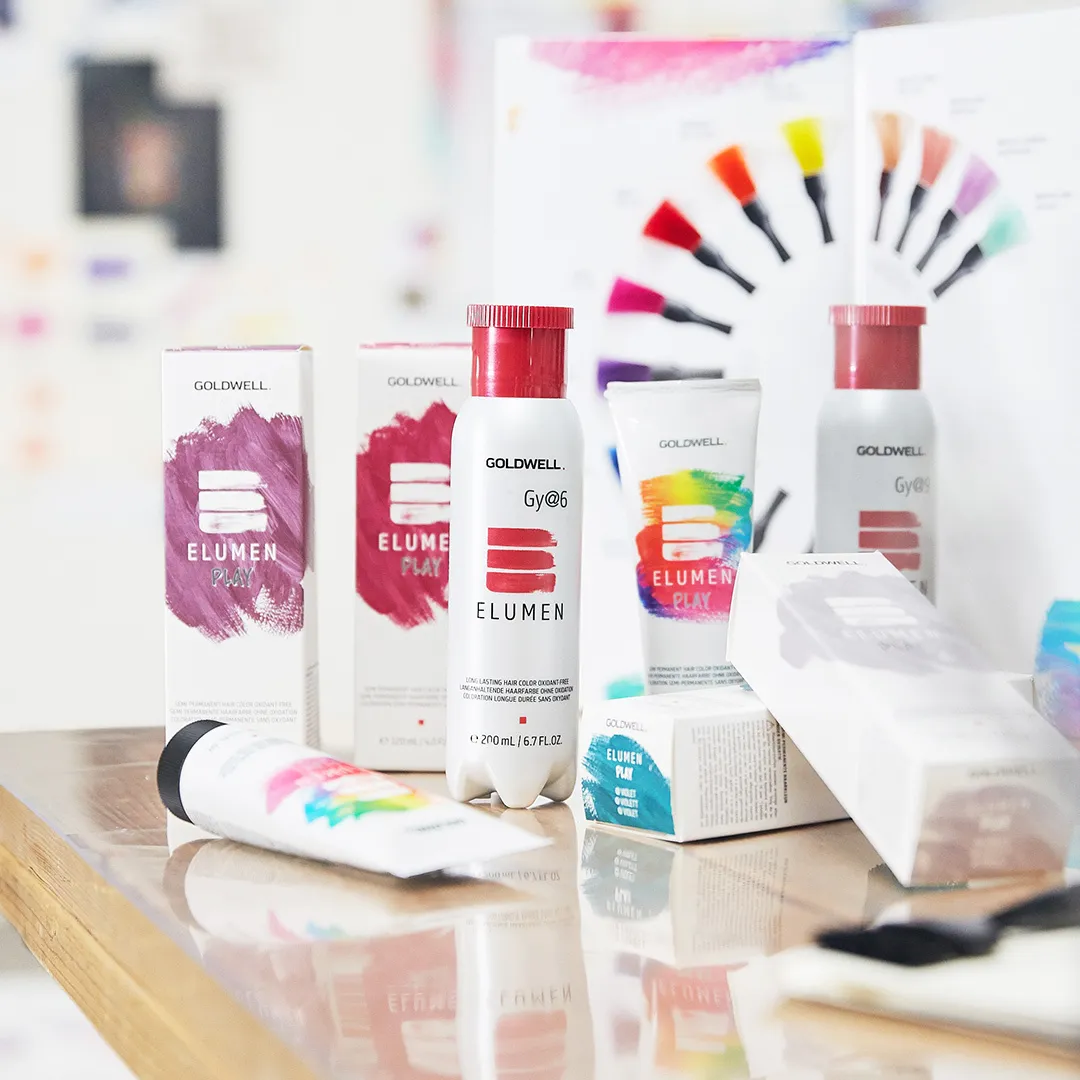 Goldwell Elumen Play è una colorazione semi-permanente, per la quale non è necessario alcun sviluppatore o ossidante. Le tonalità si suddividono in Pure, Pastello e Metallici, che possono essere combinate tra loro secondo il principio Mix & Match per creare look unici e personalizzati.