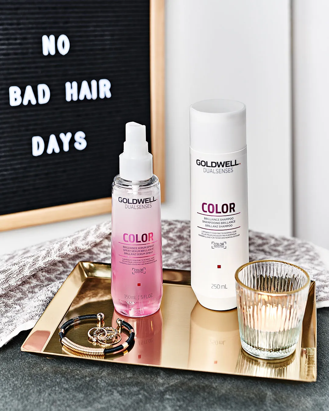 Per proteggere al meglio i capelli colorati dallo sbiadimento, shampoo, balsamo, maschera e spray siero Goldwell Dualsenses Color sono disponibili in set a un prezzo vantaggioso.