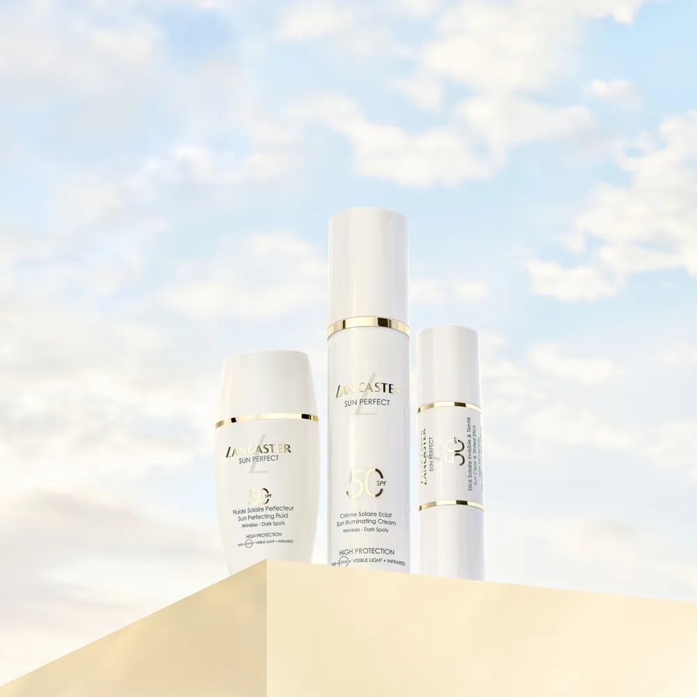 Le creme solari e i fluidi della linea Sun Perfect combinano la protezione UV con un efficace effetto anti-age. La tecnologia anti-age di Lancaster, arricchita con soia e bacche di pepe nero, impedisce la formazione delle rughe e di altri segni di invecchiamento cutaneo precoce. La texture perfezionante con effetto sfocato migliora immediatamente l’aspetto della pelle, rendendola più liscia e uniforme. Le irregolarità pigmentarie vengono attenuate e la luminosità della pelle intensificata. Il complesso anti-inquinamento protegge la pelle del viso dall’iperpigmentazione e dall’invecchiamento precoce, donando un incarnato uniforme e un aspetto più giovane.