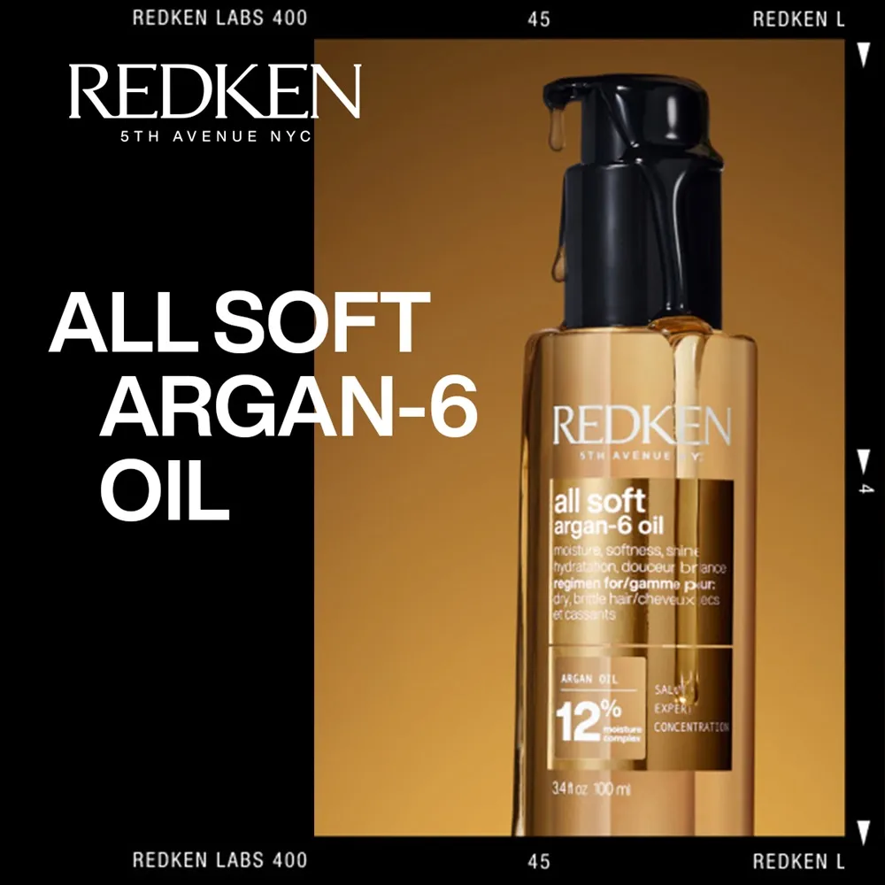 I prodotti Redken All Soft contengono acido ialuronico, un umettante che penetra all'interno dei capelli, idrata e immagazzina proteine e oli naturali. Inoltre, l'olio di argan di valore fornisce idratazione, cura e lucentezza. Come parte del complesso Keratin Enrich, rigenera i capelli insieme a PCA e Arginina, rendendo i capelli fragili di nuovo morbidi.