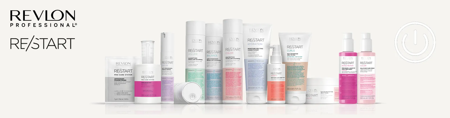 Revlon Professional RE/START è una linea di prodotti per la cura dei capelli che può essere utilizzata in salone e a casa. I prodotti garantiscono capelli dall'aspetto sano.