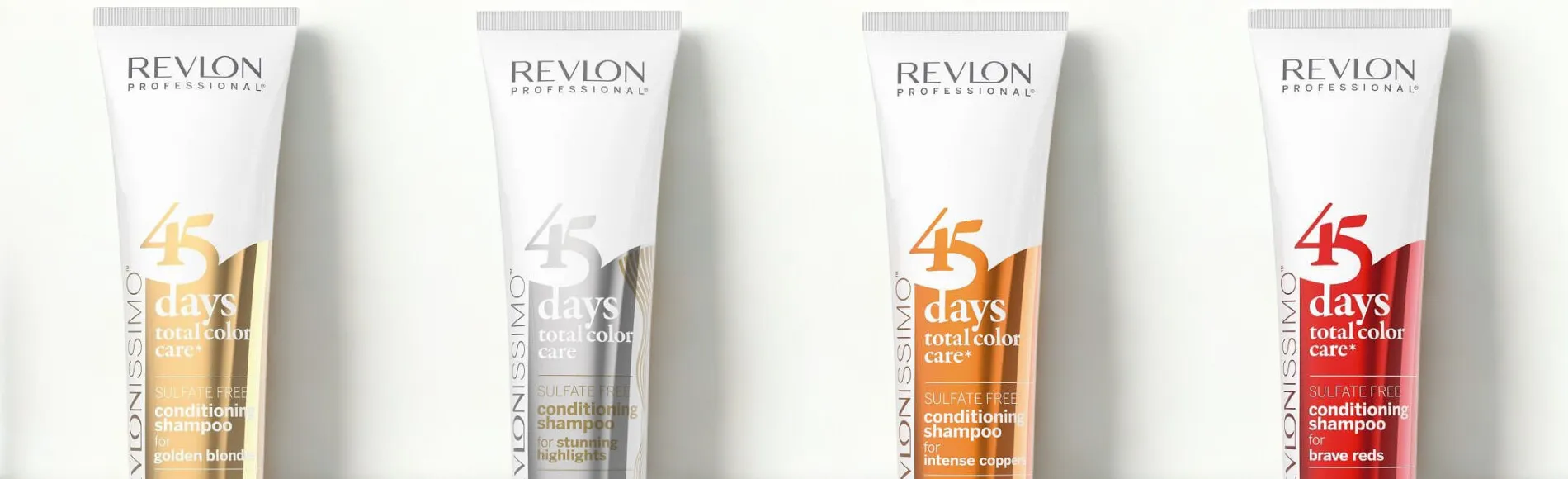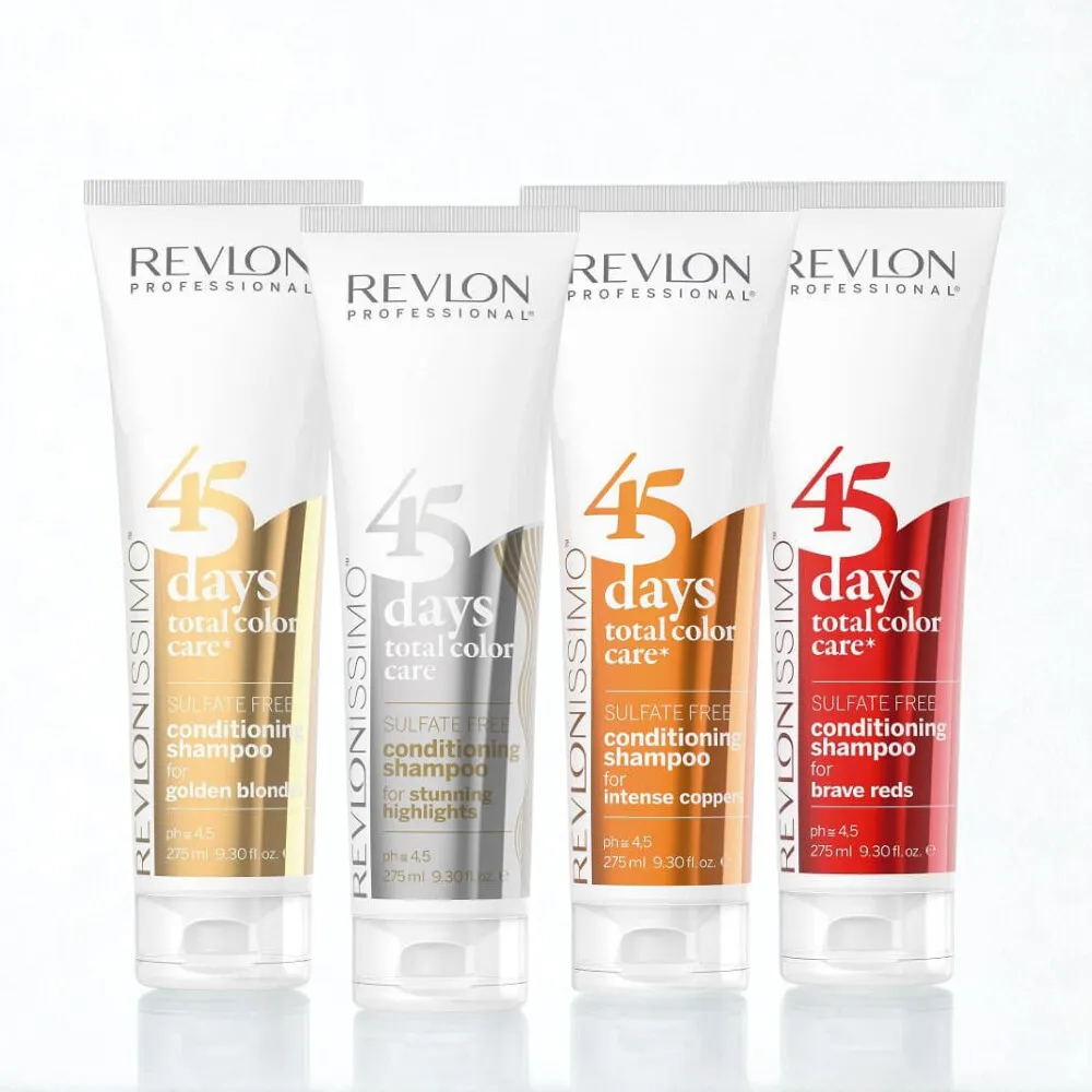 Lo shampoo colorante senza solfati della serie Revlonissimo 45 Day di Revlon Professional offre protezione contro la perdita di colore e aiuta a prolungare il tempo fino al prossimo servizio di colorazione. La serie Total Color Care aiuta a reintegrare i pigmenti nella fibra capillare. È disponibile in diverse varianti a seconda del colore dei capelli.