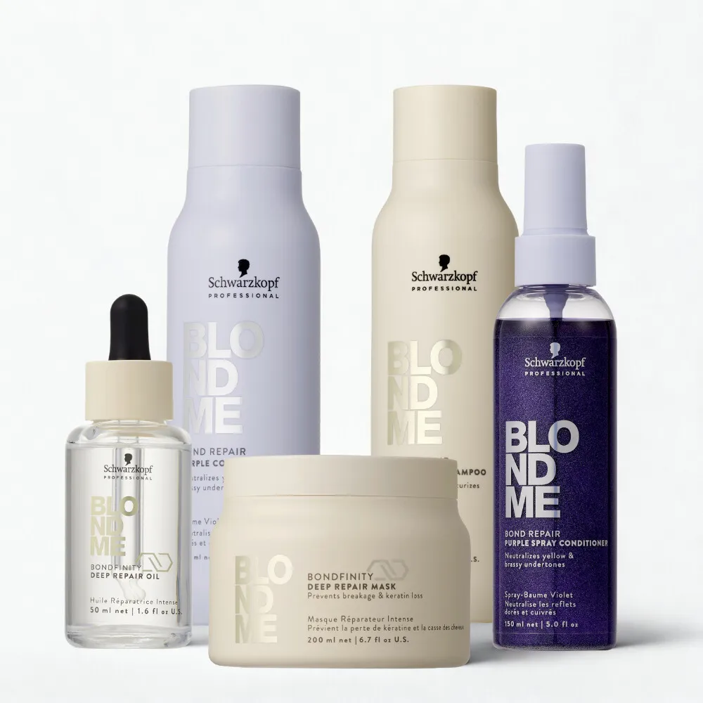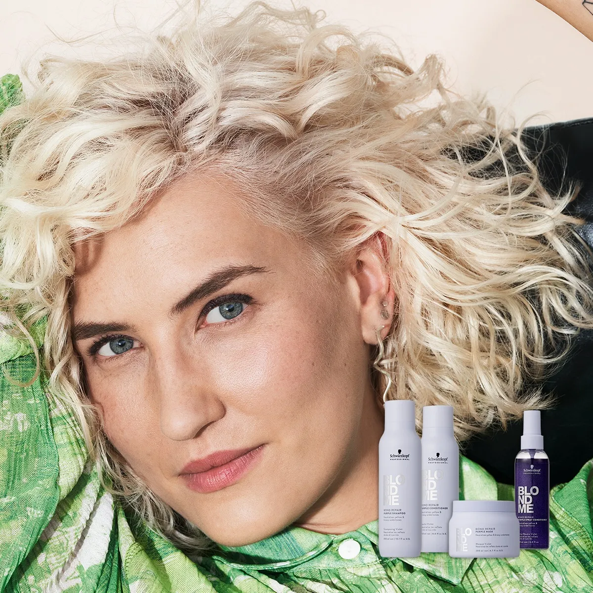 BLONDME soddisfa le esigenze di tutte le bionde. Ci sono prodotti di cura per capelli biondi, decolorazioni e toner. BLONDME è quindi la risposta definitiva a tutte le necessità delle bionde. Questo va dalla polvere decolorante BLONDME Premium Lightener 9+, ai toner BLONDME per un biondo personalizzato, fino alla cura individuale con lo BLONDME Bond Repair Purple Shampoo per i biondi freddi, oltre al balsamo e alla maschera.