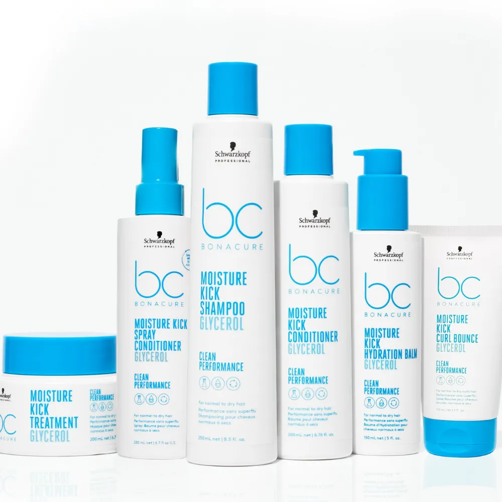 La serie Schwarzkopf Bonacure Moisture Kick è stata sviluppata appositamente per i capelli secchi e fragili che necessitano di un’idratazione intensa. I prodotti donano ai tuoi capelli un’idratazione duratura, regalando morbidezza e una lucentezza sana. Grazie alle formule leggere, i capelli non si appesantiscono e rimangono piacevolmente leggeri. In questo modo ricevi esattamente la cura di cui i tuoi capelli hanno bisogno per apparire di nuovo vitali e pieni di vita.
