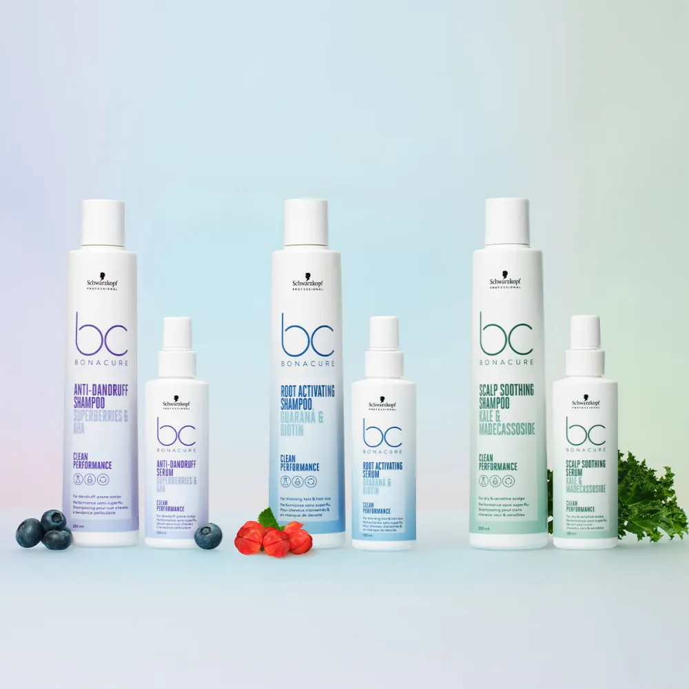 Schwarzkopf ha sviluppato 6 prodotti, ovvero uno shampoo e un siero per ciascuno dei problemi più comuni del cuoio capelluto: forfora, cute sensibile e caduta dei capelli.