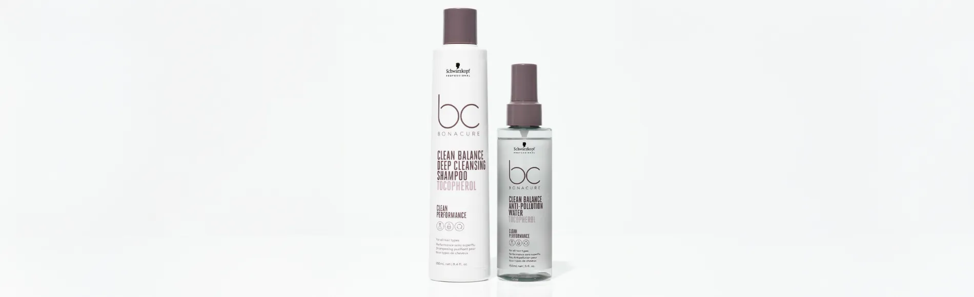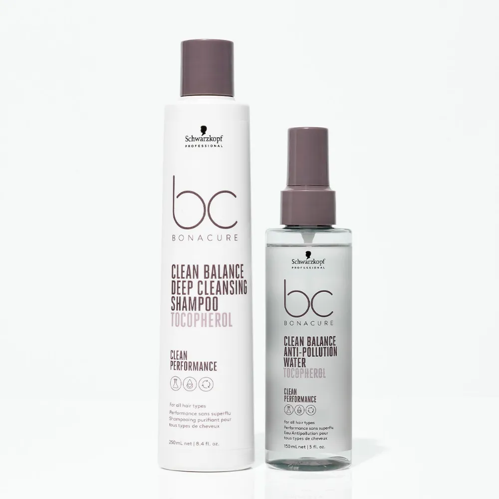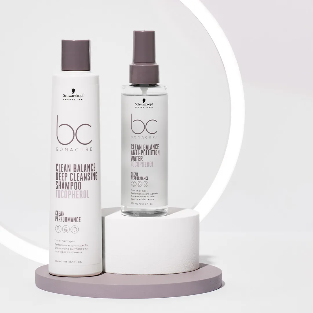 Schwarzkopf BC Bonacure Clean Balance è formulato per tutti i tipi di capelli. I prodotti garantiscono capelli profondamente puliti con il principio attivo Tocopherol e una sensazione di freschezza fino a 24 ore. Clean Balance di Schwarzkopf Professional è un metodo semplice e efficace per rimuovere efficacemente gli inquinanti ambientali dai capelli e supportare la salute dei capelli.