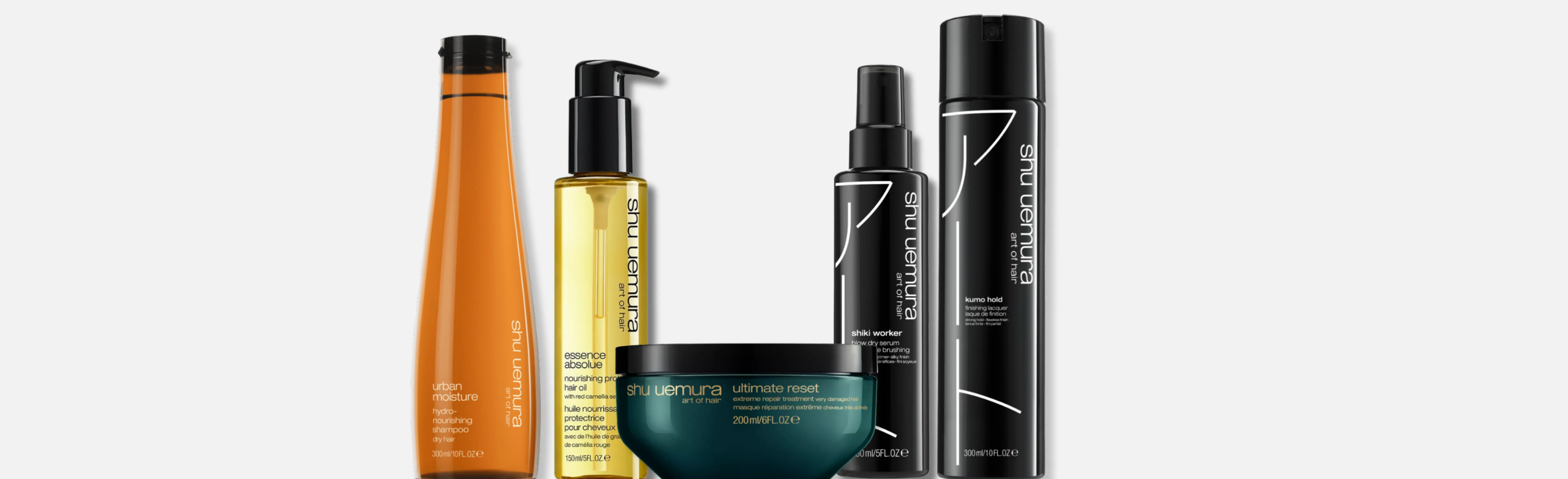 Ispirati all'Art of Haigo, una tecnica di pittura che consiste nel sovrapporre e sfumare strati di colore, i prodotti per lo styling Shu Uemura sono progettati in modo che possano essere utilizzati facilmente insieme. Formulazioni delicate e minimaliste evitano di appesantire i capelli e consentono, grazie all'uso versatile, infinite possibilità di cura e styling.