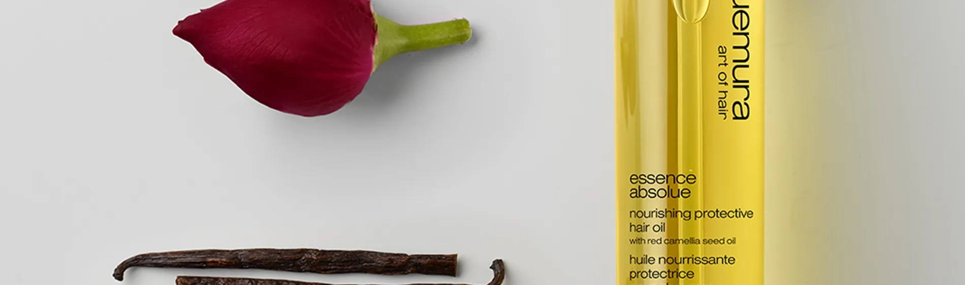 La serie Shu Uemura Essence Absolue si basa sull'olio di camelia di alta qualità. Spesso viene descritto come oro liquido, grazie alla sua composizione e effetto di lusso.