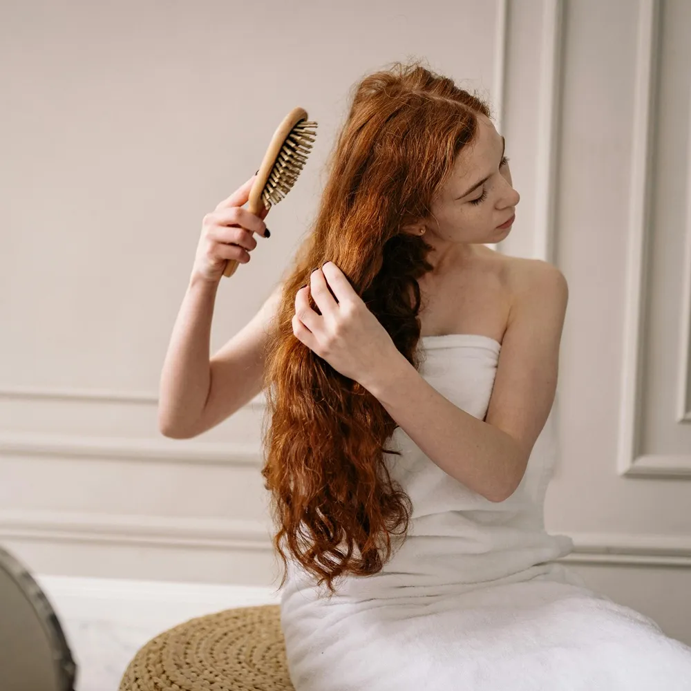 Dopo aver lavato i capelli, si consiglia di utilizzare una spazzola districante come la Tangle Teezer The Ultimate Detangler. Le sue setole flessibili proteggono i capelli fini e sensibili durante la spazzolatura a capelli bagnati.