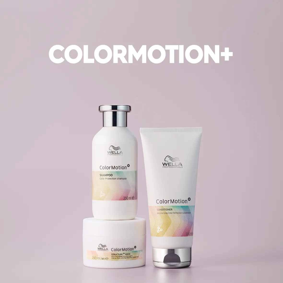 Wella ColorMotion+ previene lo sbiadimento del colore causato da lavaggi, styling e influssi esterni come vento e raggi UV. La linea garantisce un colore bello e duraturo con una qualità dei capelli eccellente grazie alle proprietà rinforzanti. Per questo Color Motion è adatto anche ai capelli danneggiati e colorati. Con ColorMotion+, l’intensità della tonalità e la corposità dei capelli rimangono inalterate per molte settimane. I prodotti fanno risplendere i tuoi capelli grazie a una brillantezza del colore unica.