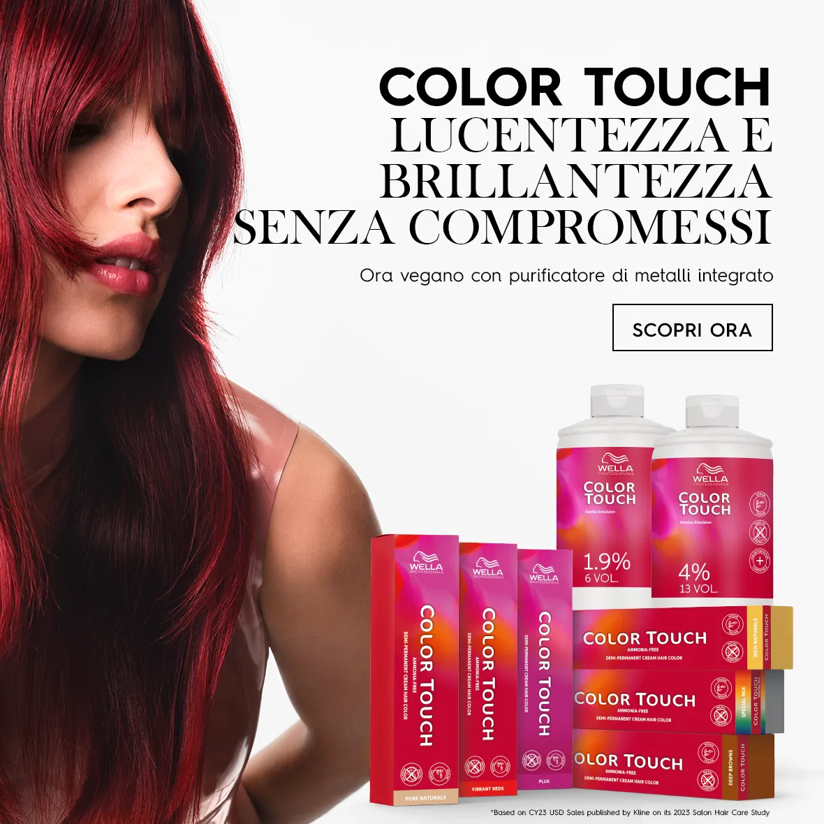 - Wella Color Touch: profondità di colore e sfumature con una brillantezza sorprendente. Copertura dei capelli bianchi fino al 50%.
